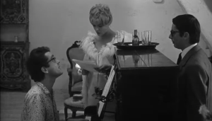 Varda a toujours aimé parler de la communication entre individus opposés, ici l’une chante l’autre pas, en 1966 dans La créature, l’un parle, l’autre pas.